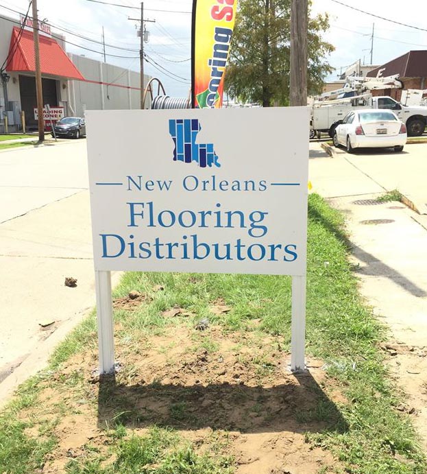 When a local NOLA company needed new sign design and installation services, they knew to turn to the pros at Prime Signs! We worked with John Nix at New Orleans Flooring Distributors to create a multiple pieces of signage to their location in Metairie, LA.